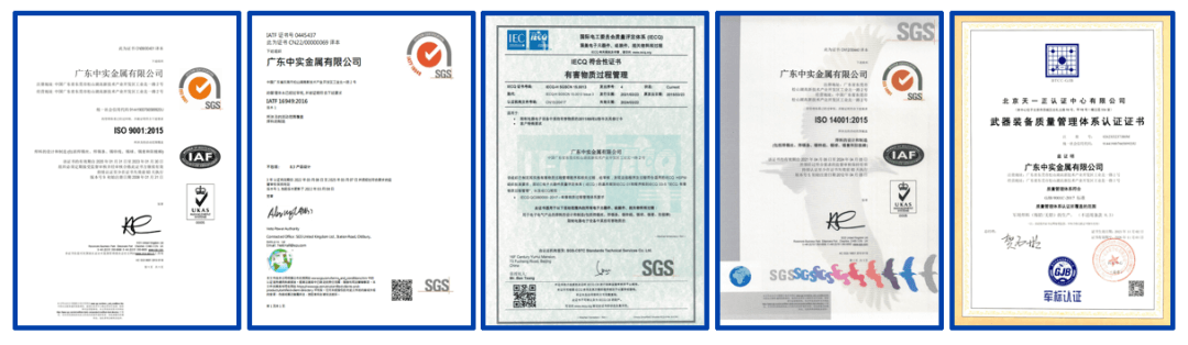 中实金属目前拥有多项管理体系,覆盖质量、环保、职业健康等多个板块,先后通过多项管理体系认证: